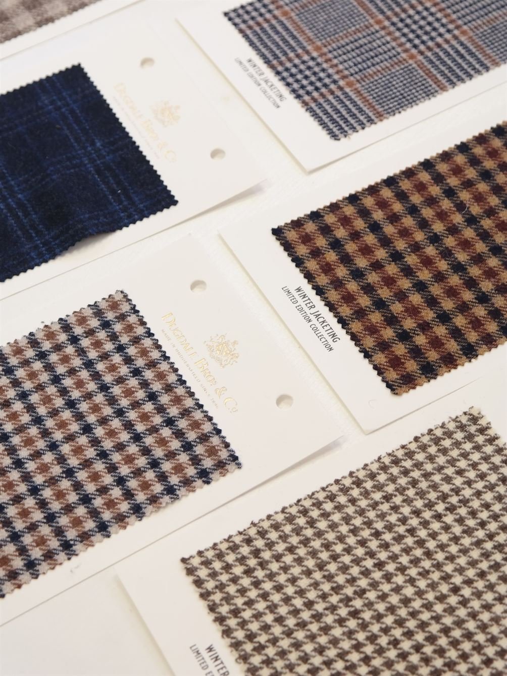 Finally, we also have a couple of Limited Edition winter collections from Dugdale Bros in the shape of their 100% merino wool “Winter Jacketing” and their flannel and double milled suiting collection “Old England”.